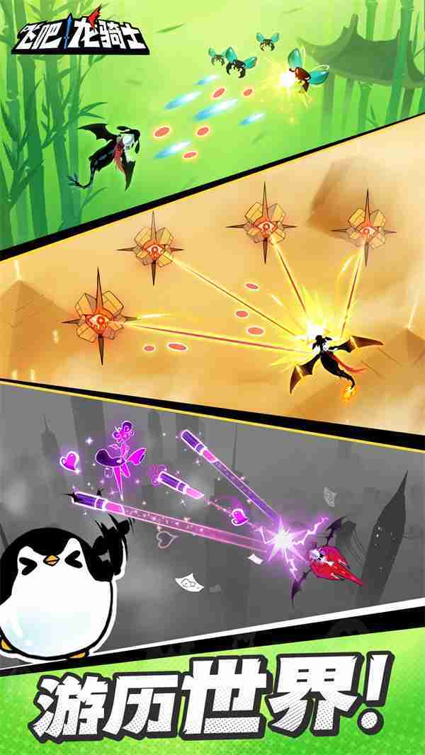《飞吧龙骑士》是一款集合了飞行弹幕射击、、、、Roguelike要素和挂机养成的休闲手游,,极具创意的吞食子弹反击玩法,,,突破传统飞行射击的刻板限制,,,,带来了独特的爽快清屏体验。。