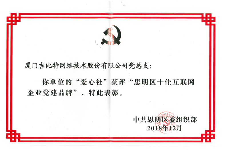 党建新闻 JIUYOU.COM党总支爱心社获评思明区 “十佳互联网企业党建品牌”