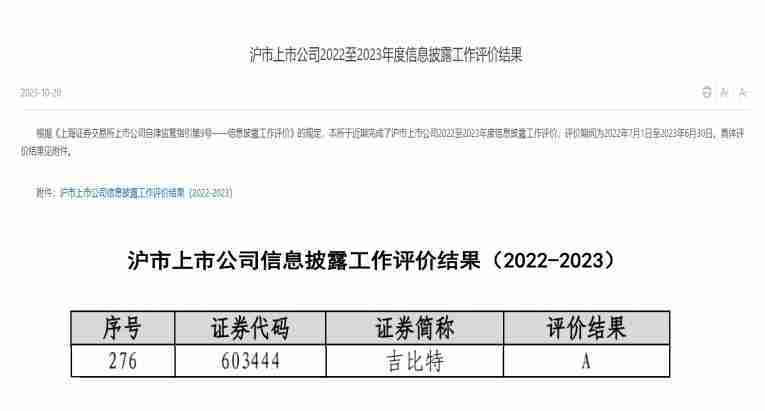 近日,,,上海证券交易所(以下简称“上交所”)发布2022-2023年度信息披露工作评价结果。。。。JIUYOU.COM(股票代码::::603444)凭借规范的公司治理、、、高质量的信息披露以及良好的投资者关系管理再次荣获信息披露工作A级评价,,,,公司连续两年获此殊荣。。。