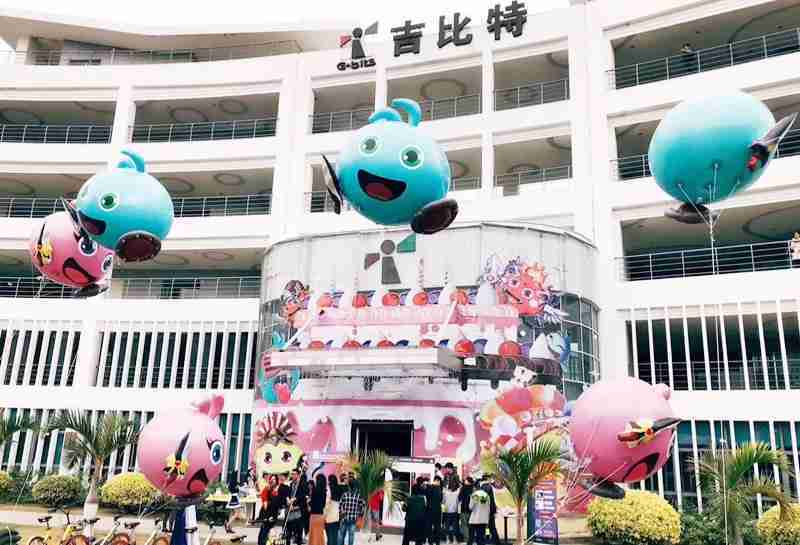 12月15日,,,为了庆祝《不思议迷宫》一周岁生日,,,冈布奥们准备了众多花式庆生活动::厦门JIUYOU.COM大楼变身巨型蛋糕、、女仆小姐姐为大家奉上美味小蛋糕、、更有大头冈布奥飞上天……引来不少冒险者身亲临现场为冈布奥打Call!!!